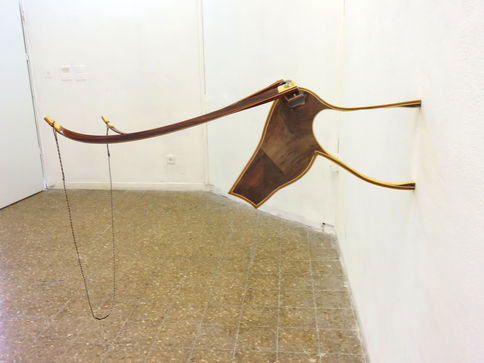 as an amateur bow builder and archer, im interested in the connection between hunting and the meat industry. the way that hunting seem irrelevant today and looks brutal and cruel as for the modern meet industry became the more humane way of consuming meat. i tried to connect the cow wich is a symbol of the modern meat industry, back to its ancient ancestors who were hunted by prehistoric man, some time with a bow and arrow which are also present in the installation